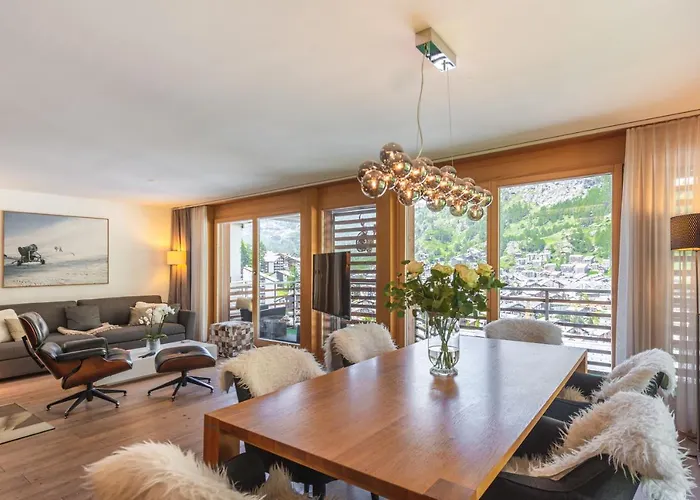 Localizado em Zermatt, o apartamento Modern Apartment With View Over Zermatt é uma acomodação de 2 quartos com uso de bicicleta e restaurante. Teleférico de Furi está a 1.6 km de distância e hóspedes podem ir para Hängebrücke em 10 minutos.